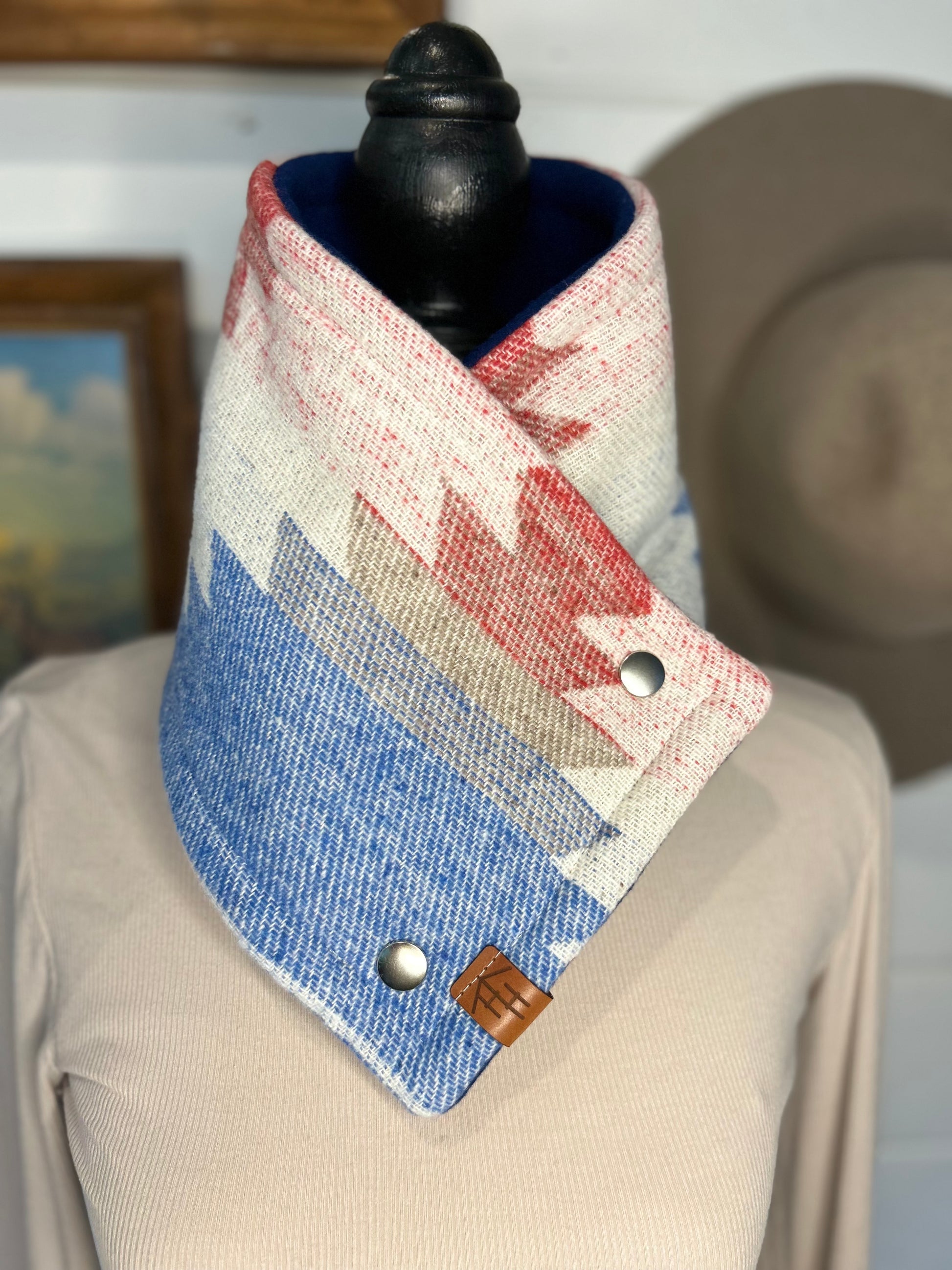 Love this little cowl! It isn’t wool-cotton and poly woven fabric! So soft and warm! Thick cobalt blue fleece liner