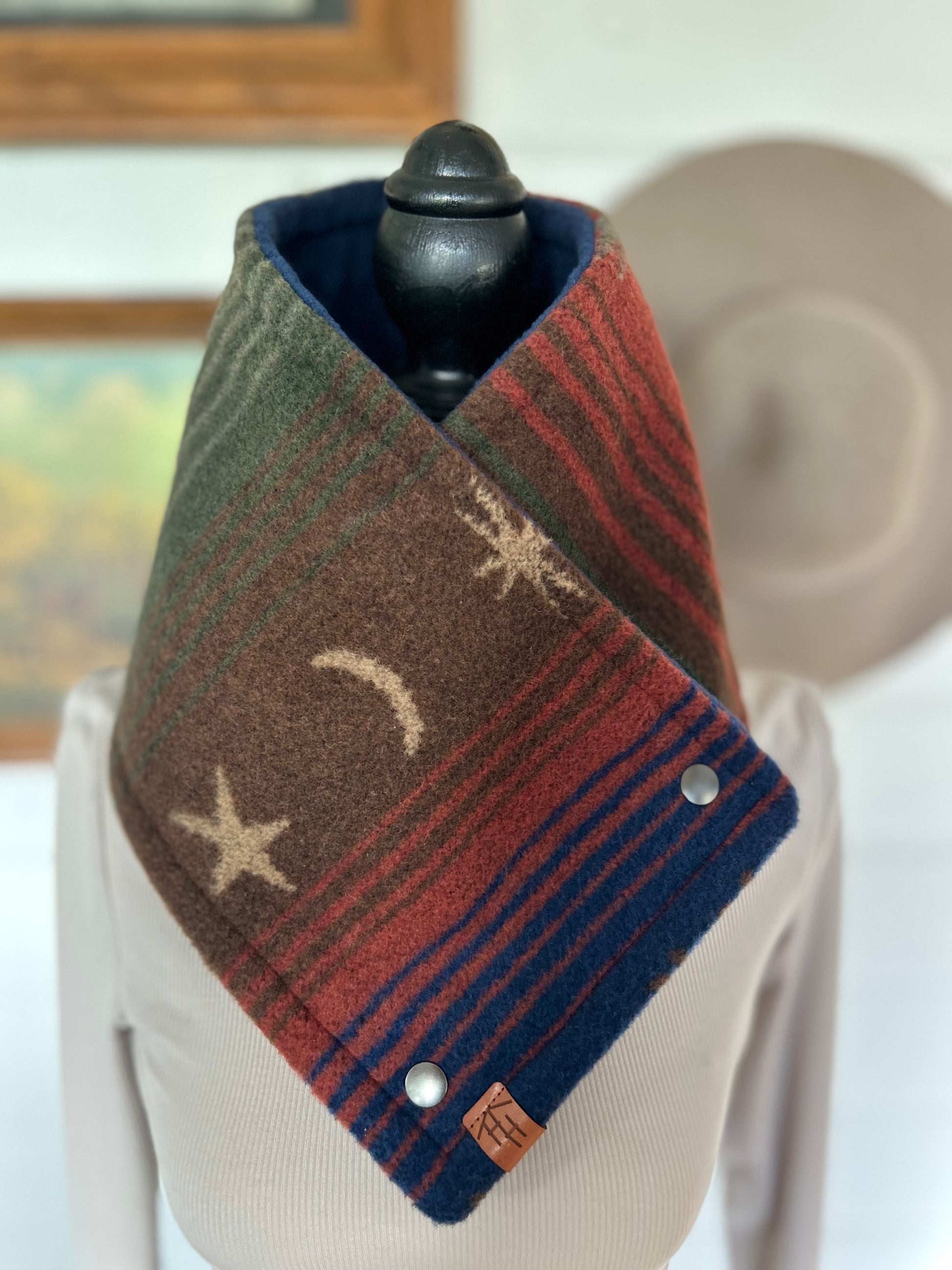 This is an extra thick fabric that is so snuggly warm. Lined with a dark blue lux fleece.