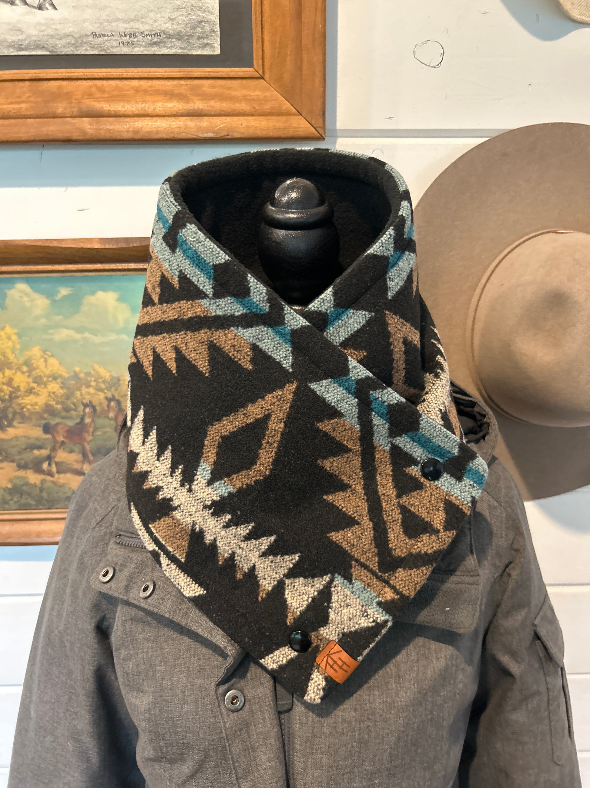 This is the thickest, softest fabric! I love the colors. It’s lined with soft black fleece and finished off with copper snaps!